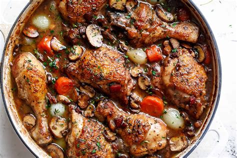 - Cuisson à feu doux: Remettez le poulet dans la cocotte, baissez le feu, couvrez et laissez mijoter pendant environ 45 minutes à 1 heure, ou jusqu'à ce que le poulet soit tendre et cuit à cœur.